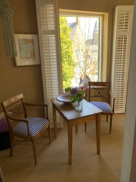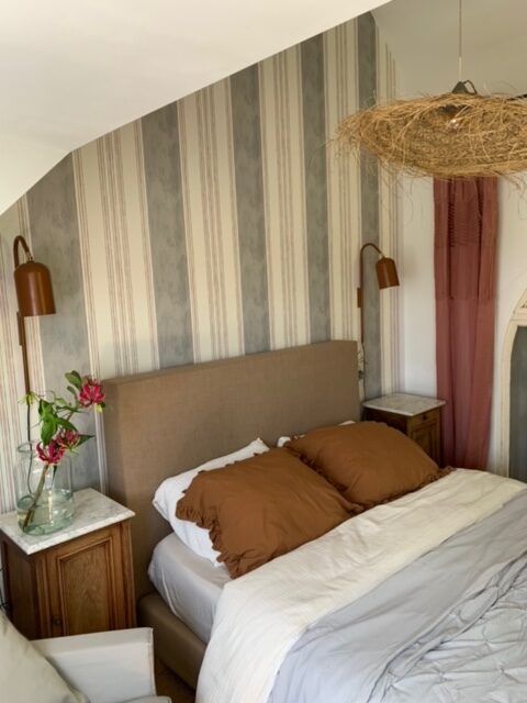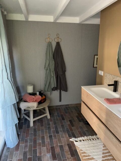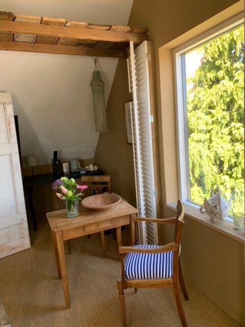 De bovenverdieping van de boutique is omgetoverd tot een prachtige sfeervolle slaapkamer, overloop met badkamer. Een tweepersoonsbed en eventueel nog plaats voor een extra gast. De kamer is wederom ingericht met veel liefde en oog voor detail, met behang uit Barcelona en gebruik van oude bedstee deuren die we vonden tijdens de verbouwing. Old and New, met de sfeer van Toscane. Vanuit de kamer heb je uitzicht op het dorpsplein, het Vlekkeplein. Ook kijk je uit op De Weel, een binnenwater van ons kleine dorpje. Er is een fijne douche en een dubbele wastafel met toilet. Een klein koelkastje en een eigen opgang. Ontbijten kun je op de kamer of beneden in de winkel. Wat je wilt. Reserveringen kun je maken door heel simpel even te bellen. Geen chic reserveringssysteem maar een belletje is veel gezelliger.